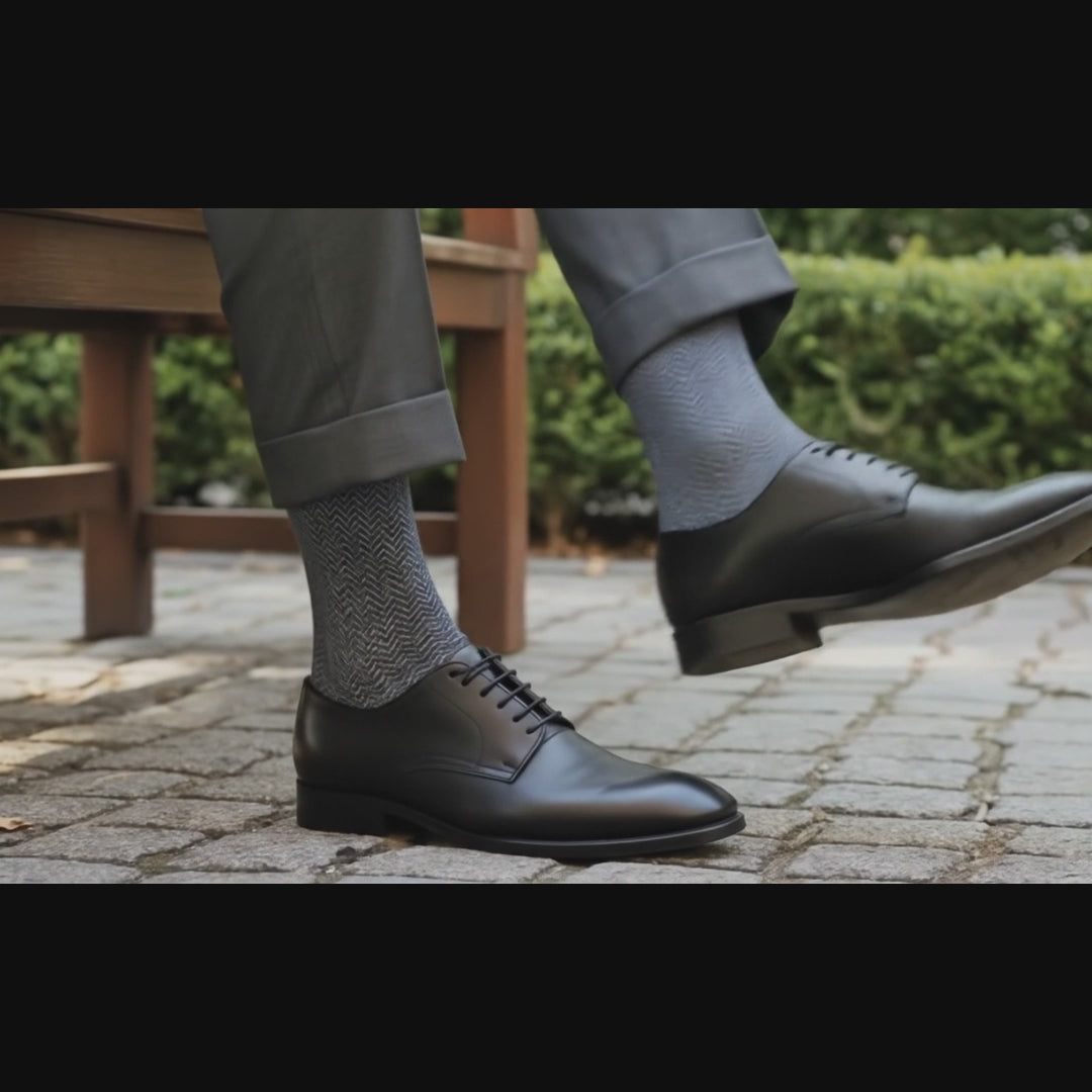 Elevate your office and smart-casual wardrobe with these Formal Socks. Knitted from premium bamboo yarn — naturally antibacterial, moisture-wicking, and ultra-soft — they pair seamlessly with formal trousers and formal shoes. Available in Navy & Grey with Houndstooth, Herringbone and Stripes designs - Pack of 3, for uninterrupted weekday wear.