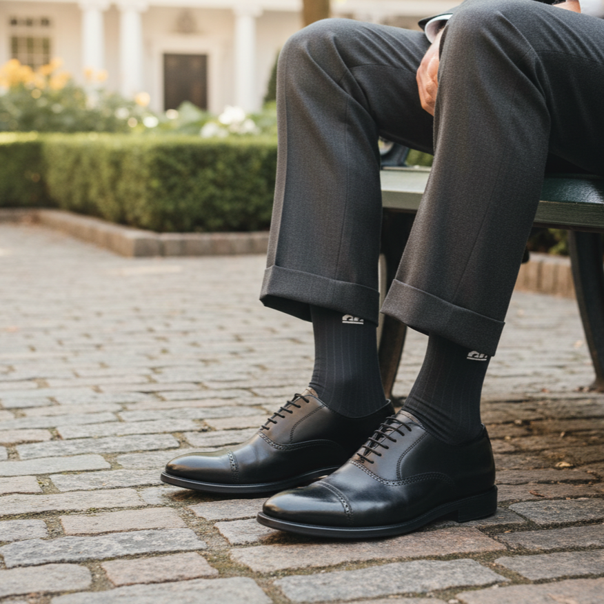 Crafted for those who value simplicity, polish and comfort. Whether you’re dressing for meetings, travel or downtime, these socks pair minimalist elegance with everyday comfort.