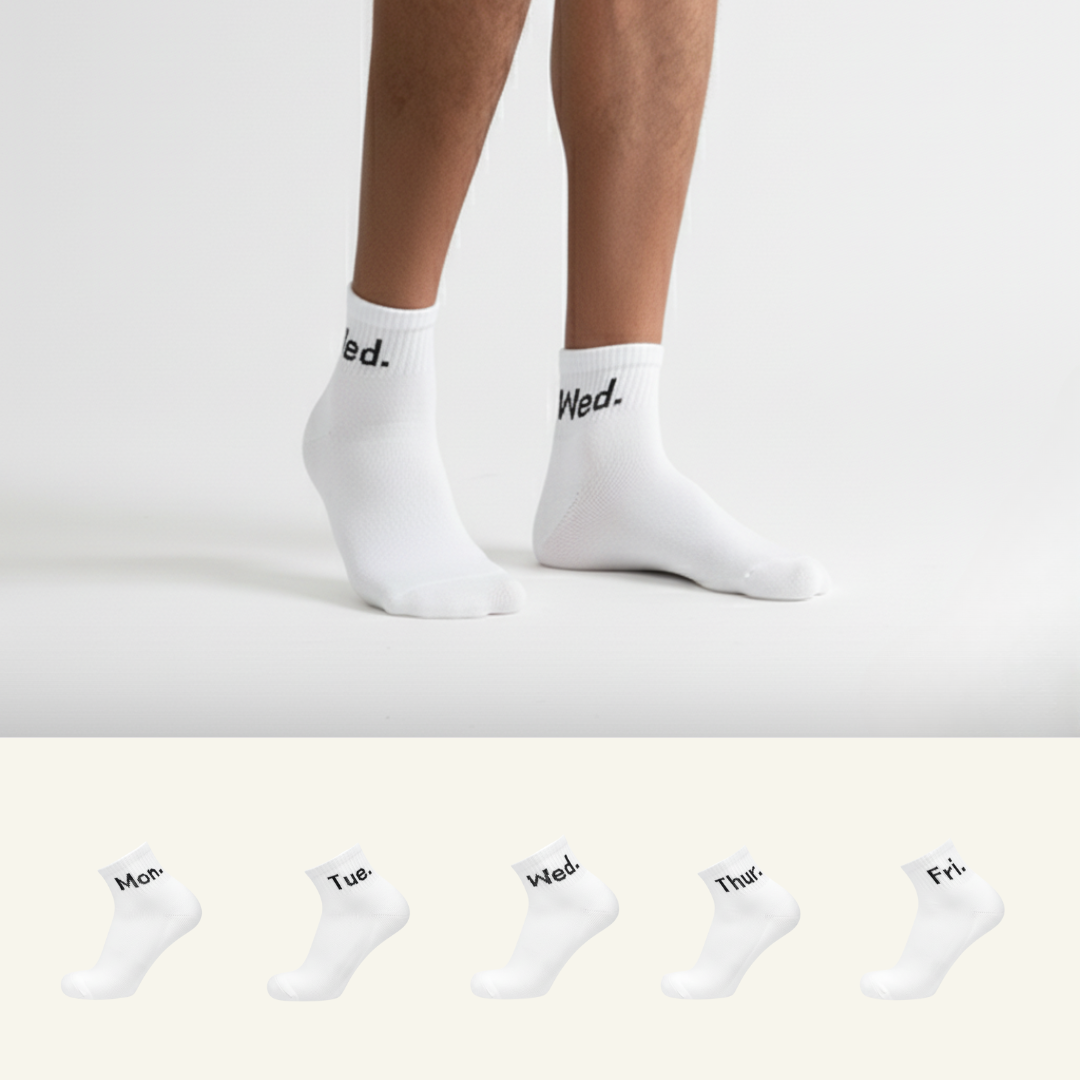 Built to handle your weekly grind—five pairs of durable white ankle socks for daily wear. Reinforced heels and toes offer extended durability. Ribbed cuffs provide a secure fit without slipping.
