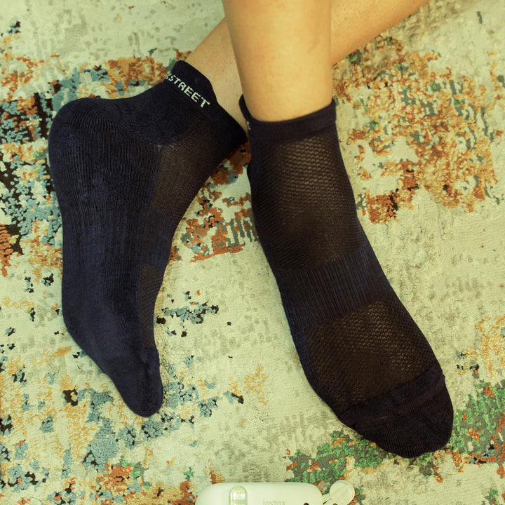 Low ankle-length socks engineered for both performance and daily comfort. Featuring a sleek, minimal silhouette with a back tab to prevent slipping, these socks pair seamlessly with loafers, sneakers, and athletic shoes—ideal for gym sessions, office hours, or casual days out.