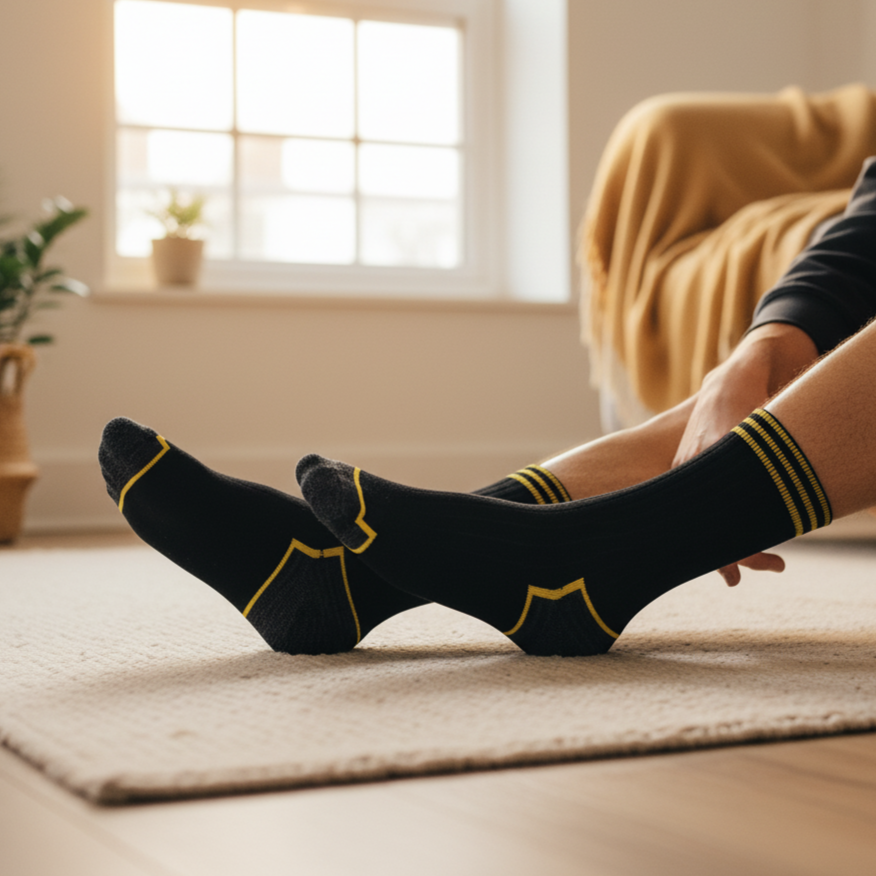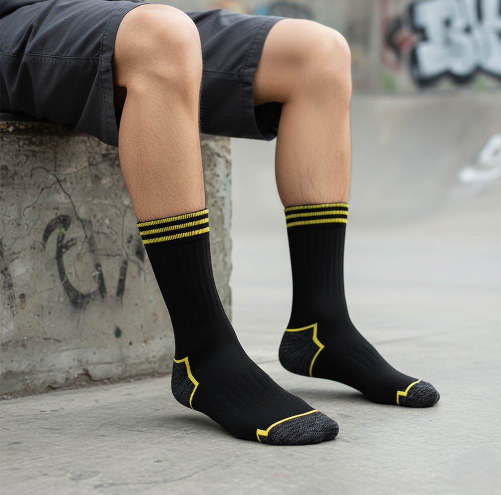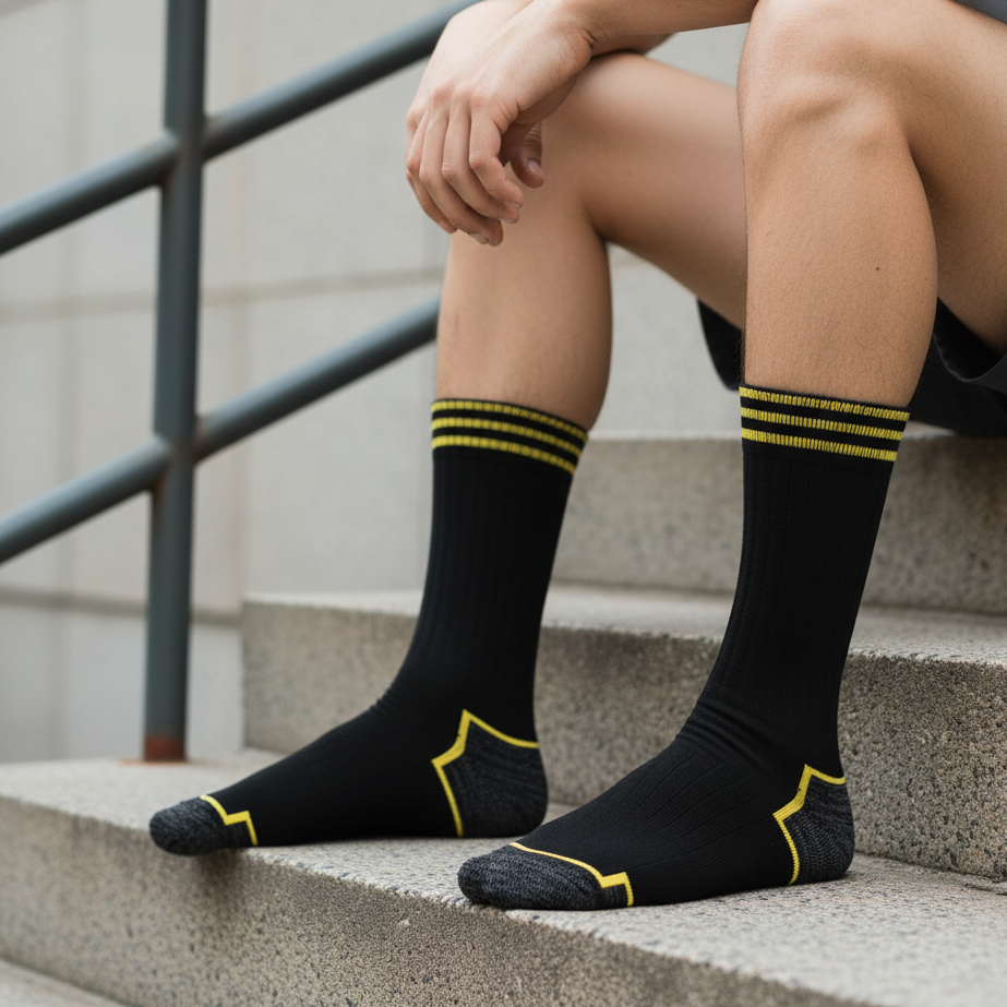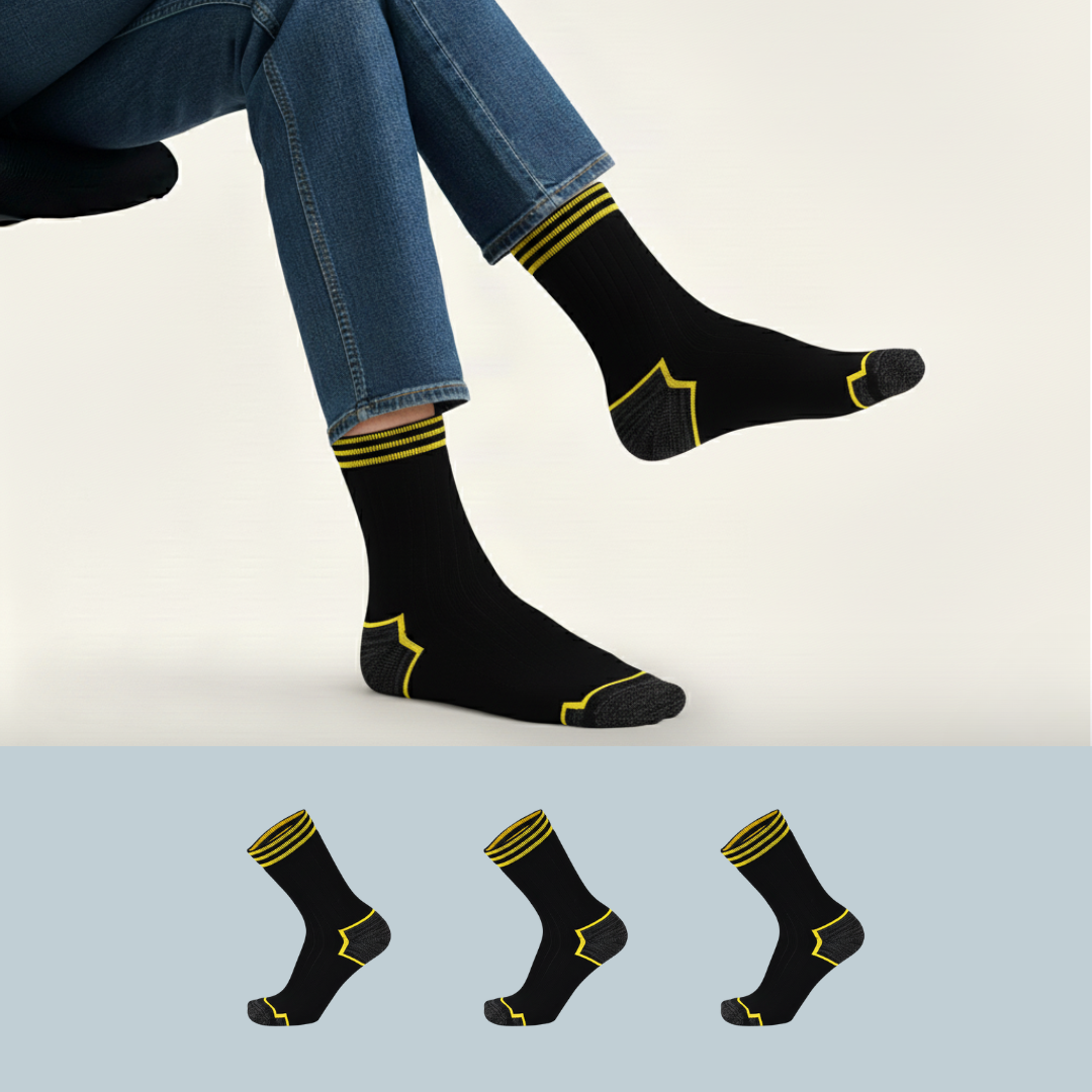 These Winter Thermal Crew Socks are built for those who demand performance without compromising on style. Featuring a bold mix of black and grey accented with sporty yellow stripes, this pack delivers high-impact comfort for every training session and casual stride.