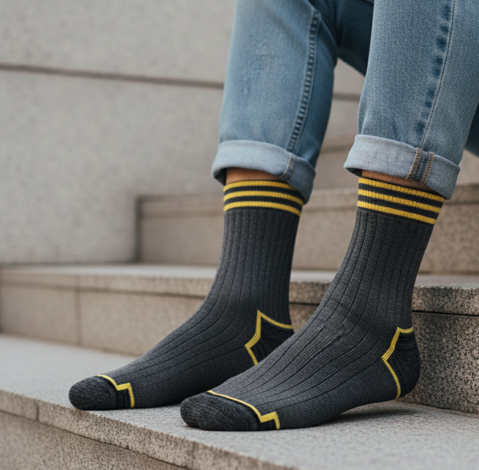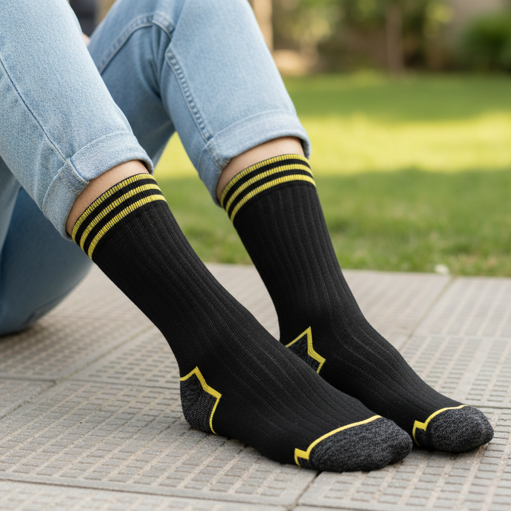 Engineered with reinforced heel and toe zones for added durability. Features ribbed cuffs for a secure, stay-in-place fit that resists slipping or bunching. Built for daily wear and repeated washes.